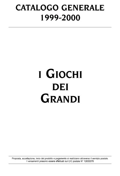 E siamo così giunti, ahimè, all'ultimo catalogo di questa rassegna, ed ultimo catalogo cartaceo della ditta di Nando Ferrari. Alle soglie del millennio, anche la IGDG cambia parzialmente volto, ma questo sarà effettivamente il canto del cigno della storica ditta di Verona. Il mondo cambierà velocemente e, di lì a poco le reti telematiche e i colossi della distribuzione cambieranno il modo di fare informazione e commercio, e "I Giochi dei Grandi" così come l'abbiamo conosciuta non sarà più.